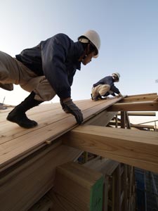 屋根には8ミリ角ダボ入りの野地板を全面に張っています。