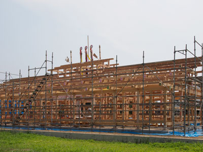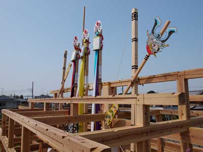 棟が上がり、弊串を立て上棟式を行いました。